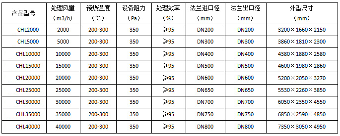 五、RCO催化燃燒處理設備型號及參數