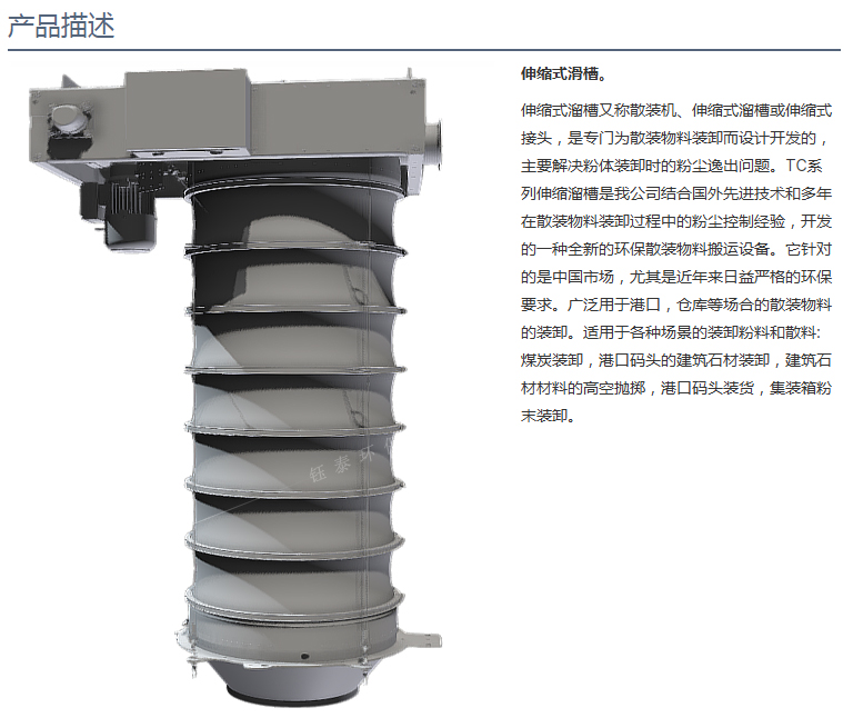 服務(wù)電話:13091153069(同微信)汽車裝料伸縮溜筒的特點(diǎn)